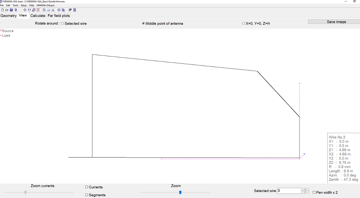 The schematic above shows the layout of my inverted U antenna.